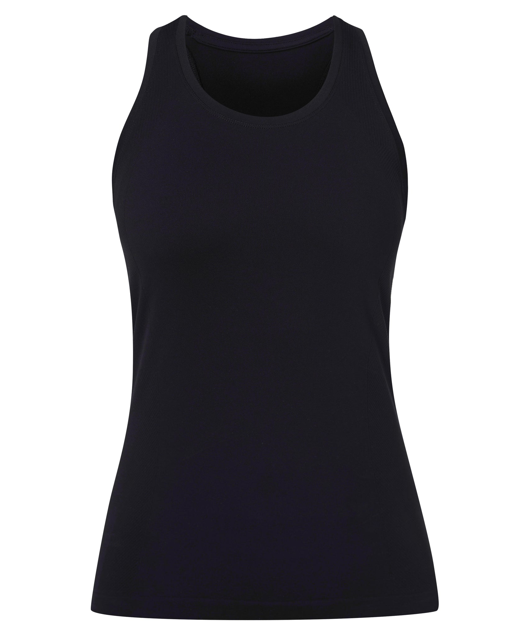 - Slim fit with round neck and sporty racerback
