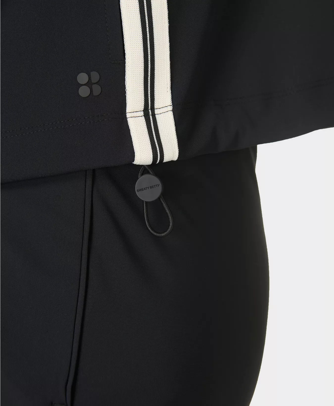 • Relaxed fit with tapered sleeves and a bungee at the hem to create a blouson effect